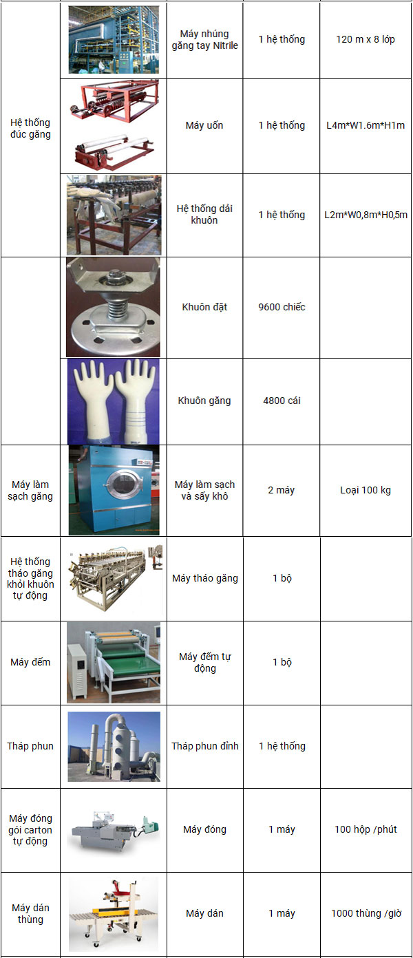 Thông tin cơ bản cho dây chuyền sản xuất nitrile 9.0 G/ đôi